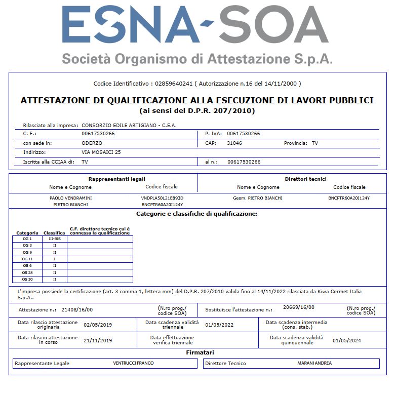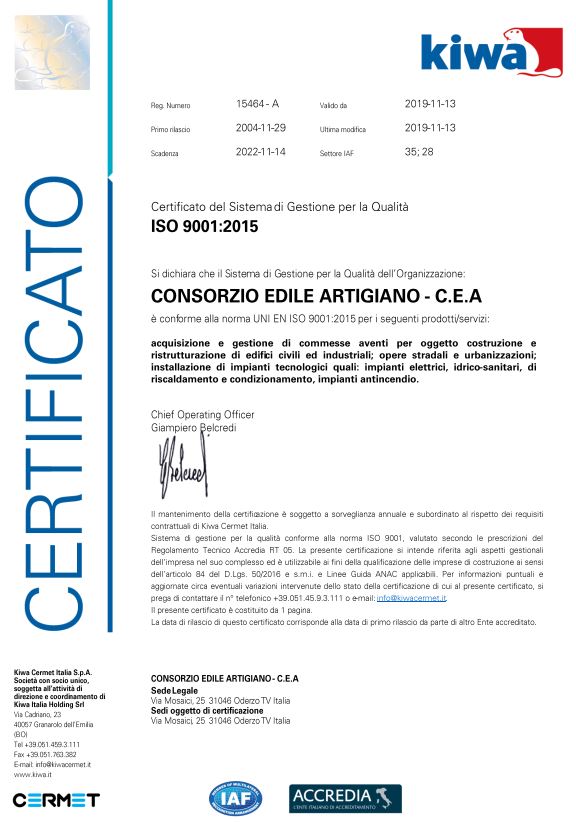 Dal 2004 disponiamo della certificazione UNI EN ISO 9001