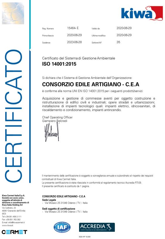 Dal 2020 disponiamo della certificazione UNI EN ISO 14001