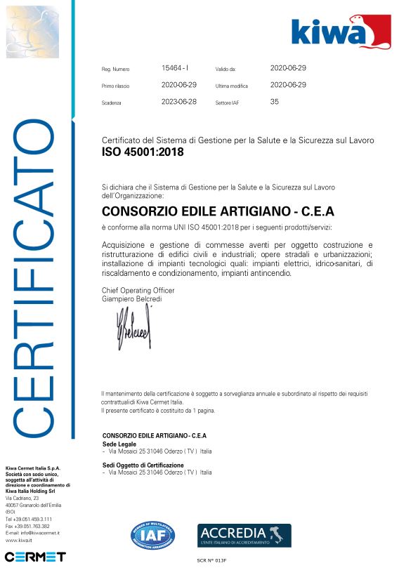 Dal 2020 disponiamo della certificazione UNI EN ISO 45001